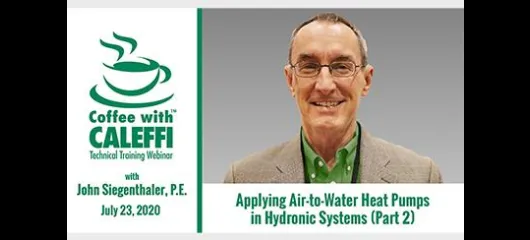 July 01, 2020 Coffee with Caleffi™ Applying Air-to-Water Heat Pumps in Hydronic Systems (Part 2) Thursday, July 23 at 12:00-1:30 p.m. CDT Read more