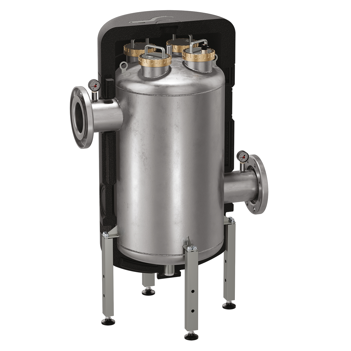 Elementos filtrantes de acero inoxidable extraíbles e inspeccionables individualmente.