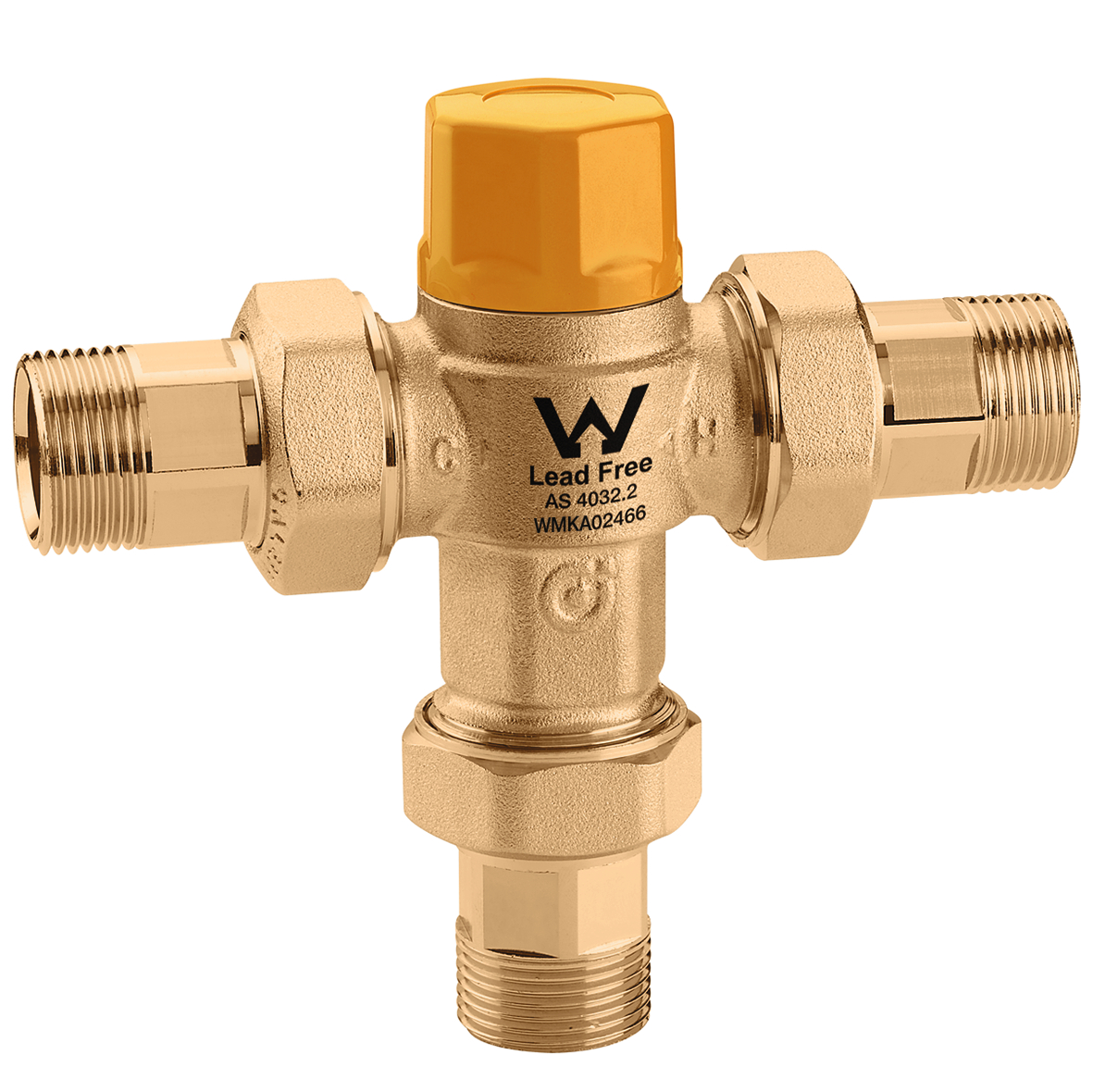 Nagy teljesítményű, állítható forrázásgátló hőmérsékletszabályozó szelep visszacsapó szelepekkel és szűrőkkel a bemeneti nyílásokon. Alkalmas napkollektoros és átfolyós melegvíz-rendszerekhez. Csatlakozások: G 3/4" A (ISO 228-1) M, szerelvény. Maximális működési nyomás: 14 bar. Közeg hőmérséklet tartomány: 2–100 °C. Beállítási hőmérséklet tartomány: 30–50 °C. DN: DN 20 (test). Kv: 1,7 m³/h. Anyagok: horganymentes ötvözetű DR "alacsony ólomtartalmú" sárgaréz.
