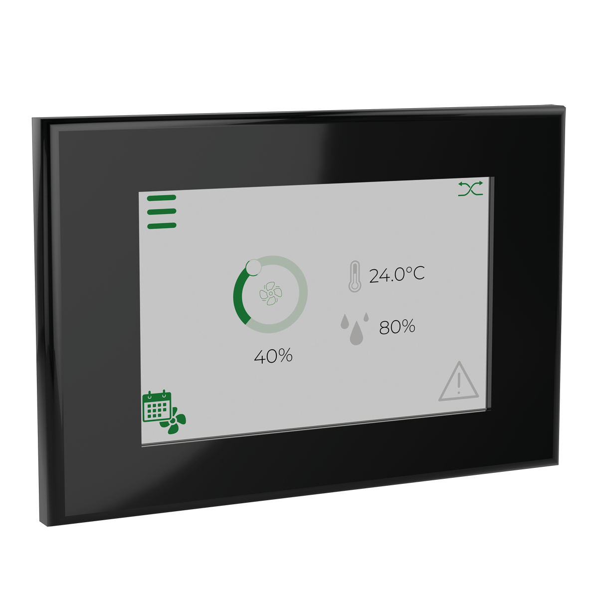 Comando con display touch-screen con controllo portata programmabile a fasce orarie.