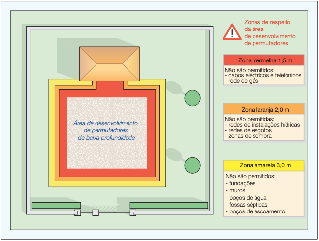 Com os permutadores de calor de baixa profundidade, não se deve captar demasiado calor do terreno (ver notas relativas ao dimensionamento de cada permutador). Se tal acontecer, podem ocorrer duas situações de perigo: (1) o “colapso” da instalação, (2) e a deterioração da vegetação, que cresce em cima da zona de colocação dos permutadores (erva) ou que confina com a mesma (plantas, sebes, etc.).