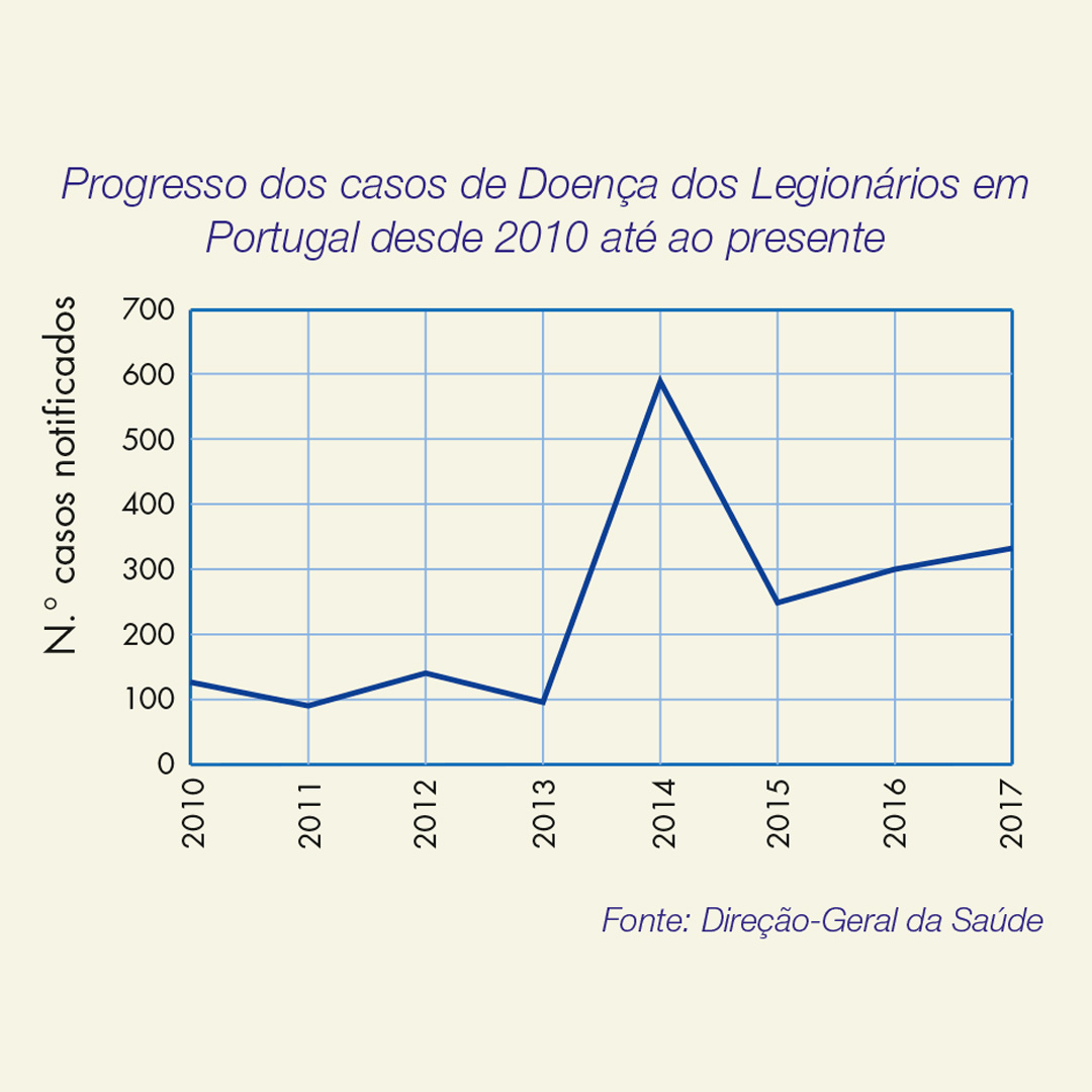 As infeções por Legionella representam um problema cada vez mais grave para a saúde pública, tal como demonstram os recentes casos. Assim, pretendemos chamar a atenção para este tema tão conhecido e, no entanto, por vezes tratado de uma forma pouco exaustiva e frequentemente subestimado.